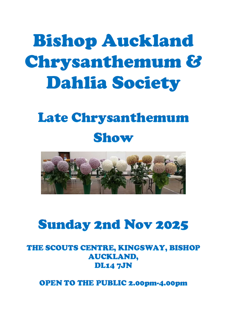 Bishop Auckland Chrysanthemum and Dahlia Society’s Late Chrysanthemum Show is to be held on Sunday 2nd November 2025. Venue: The Scouts Centre, Kingsway, Bishop Auckland, Co. Durham DL14 7JN Event is […]